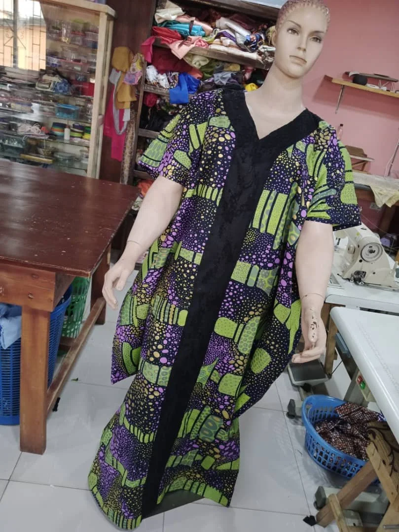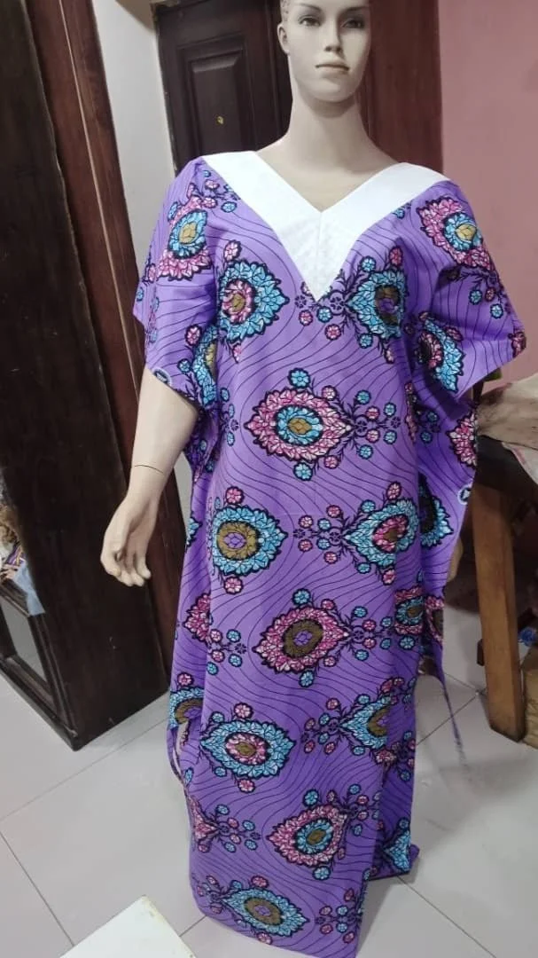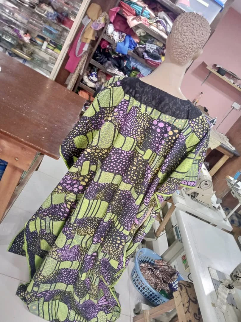 Kaftan Ankara with Net-Lace Neckline (Front)