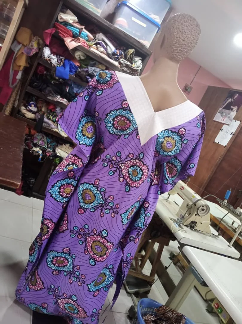 Kaftan Ankara with Net-Lace Neckline (Back)